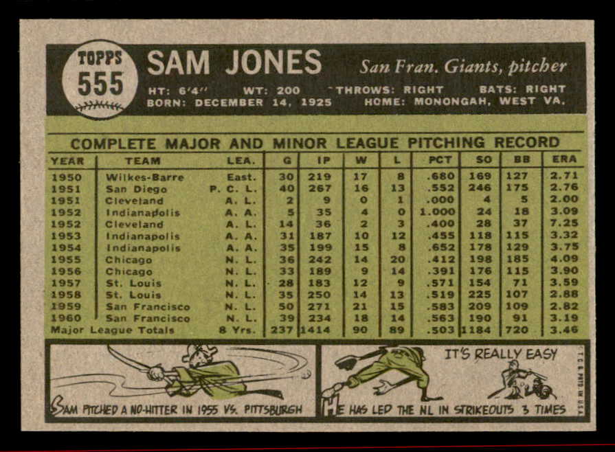 1961 Topps Baseball #555 Sam Jones Giants VG-EX 542805