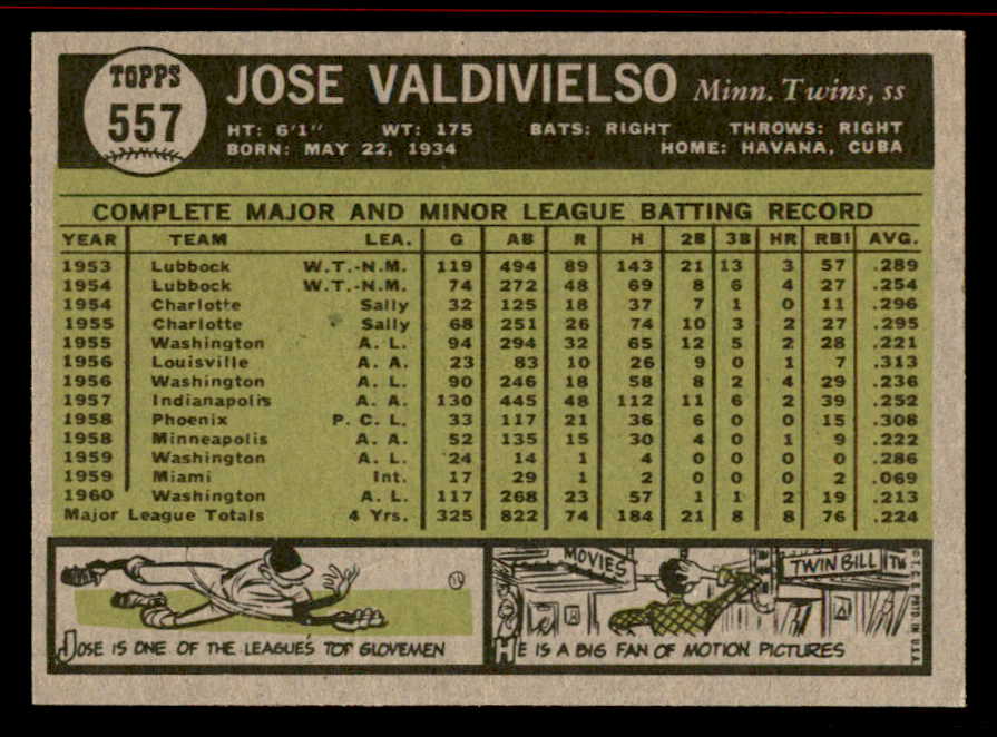 1961 Topps Baseball #557 Jose Valdivielso Twins NR-MT 542778