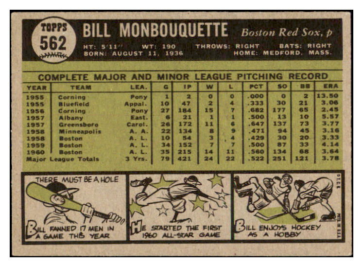 1961 Topps Baseball #562 Bill Monbouquette Red Sox EX-MT 531283