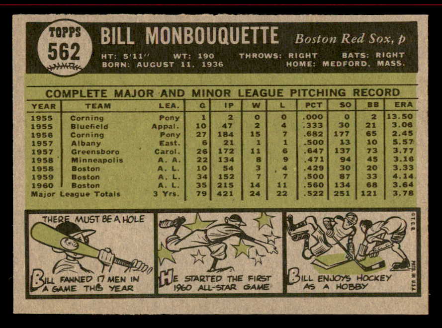 1961 Topps Baseball #562 Bill Monbouquette Red Sox NR-MT 542782