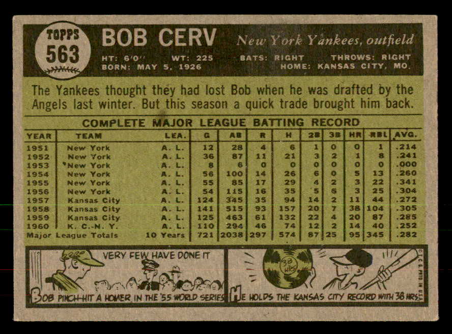 1961 Topps Baseball #563 Bob Cerv Yankees EX 541296