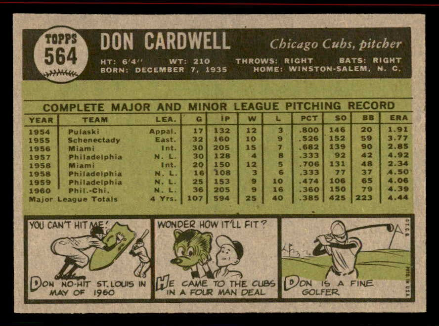 1961 Topps Baseball #564 Don Cardwell Cubs EX-MT 542633