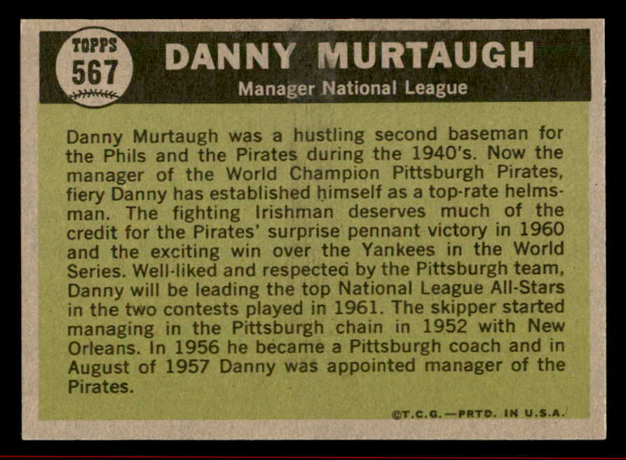 1961 Topps Baseball #567 Danny Murtaugh A.S. Pirates NR-MT 542784