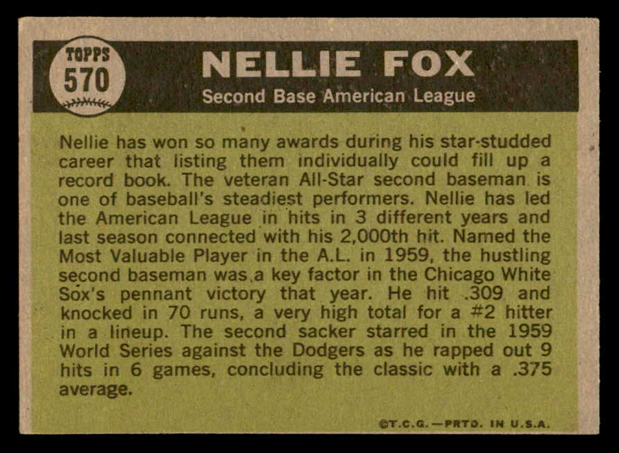 1961 Topps Baseball #570 Nellie Fox A.S. White Sox EX 540282