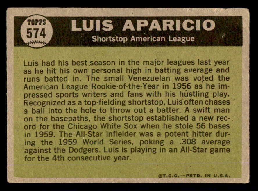 1961 Topps Baseball #574 Luis Aparicio A.S. White Sox GD-VG 540416