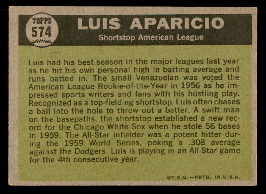1961 Topps Baseball #574 Luis Aparicio A.S. White Sox VG-EX 546709