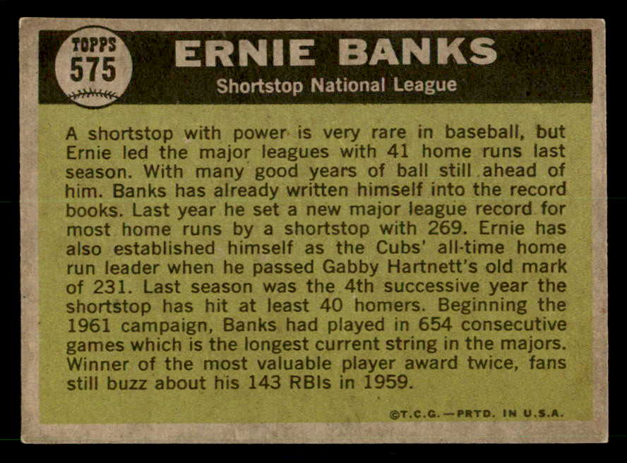 1961 Topps Baseball #575 Ernie Banks A.S. Cubs EX-MT 539608