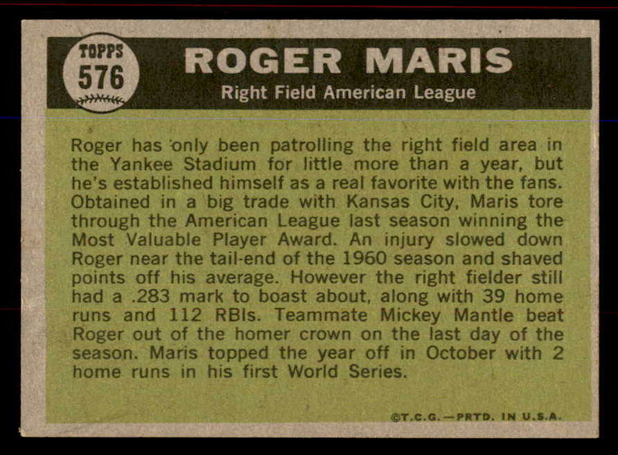 1961 Topps Baseball #576 Roger Maris A.S. Yankees EX-MT 545492