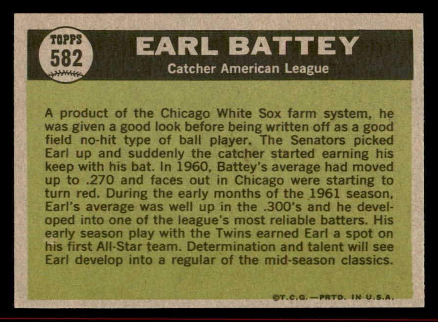 1961 Topps Baseball #582 Earl Battey A.S. Twins NR-MT 542785