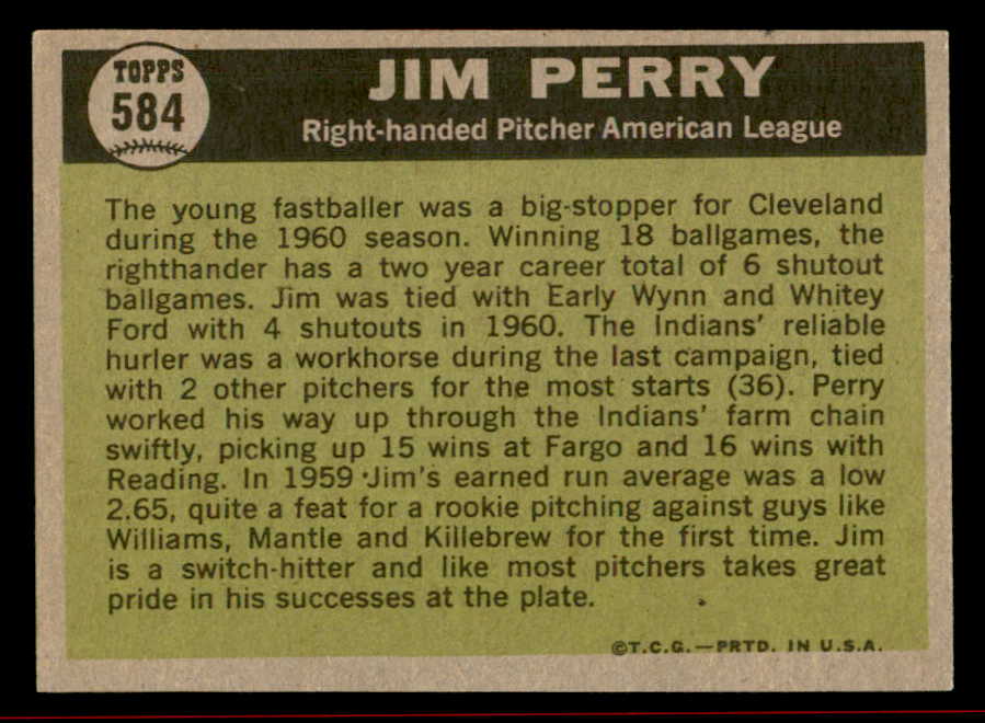 1961 Topps Baseball #584 Jim Perry A.S. Indians NR-MT 542787