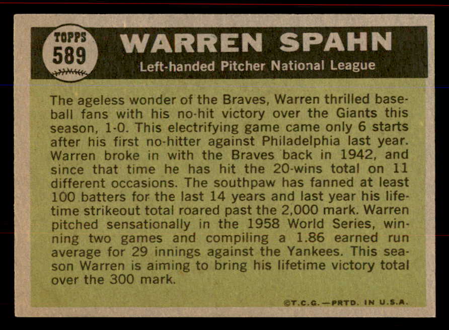 1961 Topps Baseball #589 Warren Spahn A.S. Braves NR-MT 545729