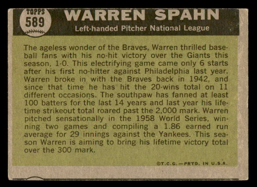 1961 Topps Baseball #589 Warren Spahn A.S. Braves VG-EX 540337