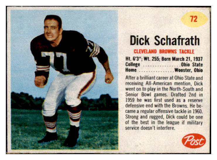 1962 Post Football #072 Dick Schafrath Browns EX-MT 529373