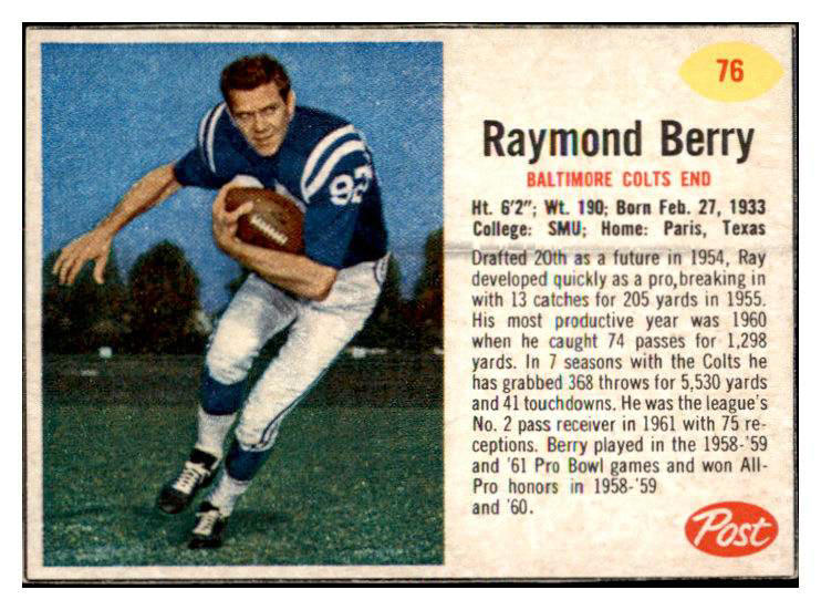 1962 Post Football #076 Raymond Berry Colts NR-MT 415469
