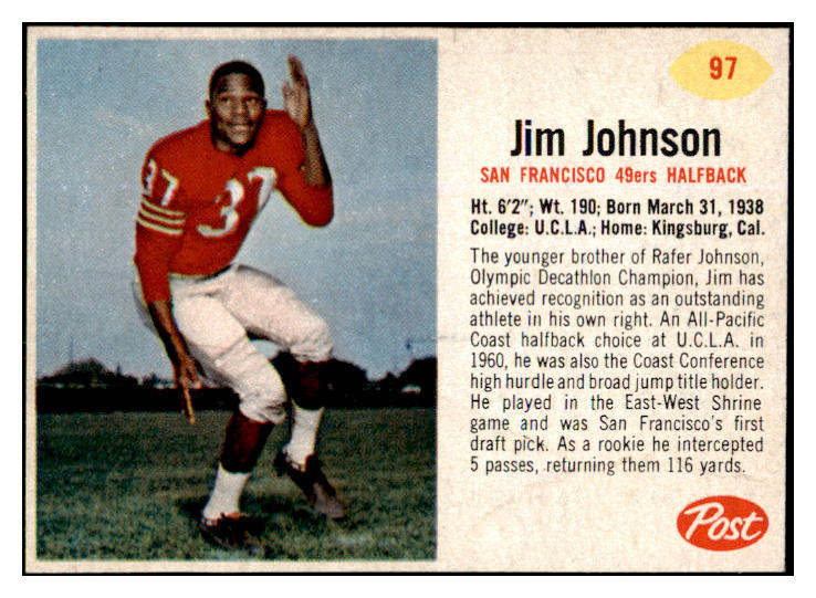 1962 Post Football #097 Jim Johnson 49ers NR-MT 436426