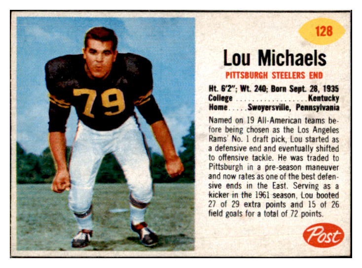 1962 Post Football #128 Lou Michaels Steelers NR-MT 457926