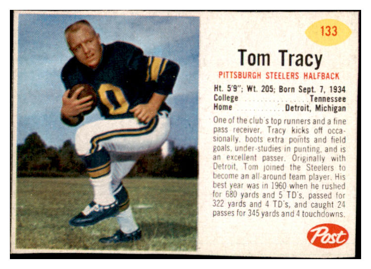 1962 Post Football #133 Tom Tracy Steelers EX 529410