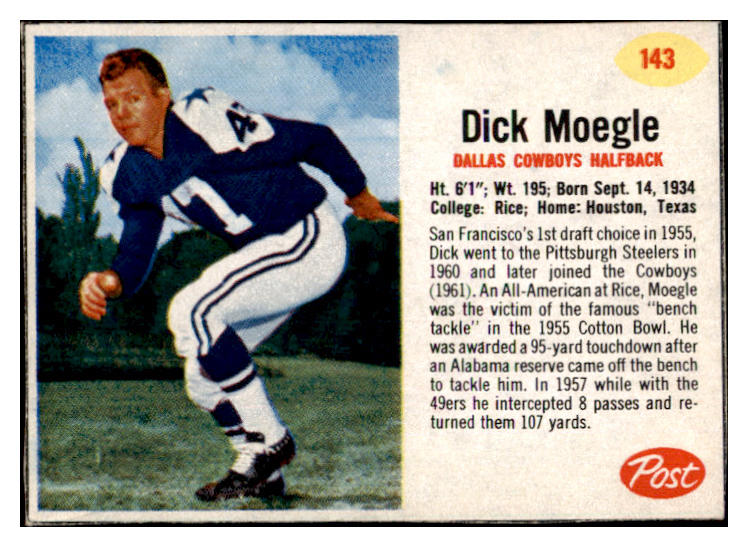 1962 Post Football #143 Dick Moegle Cowboys EX-MT 529416