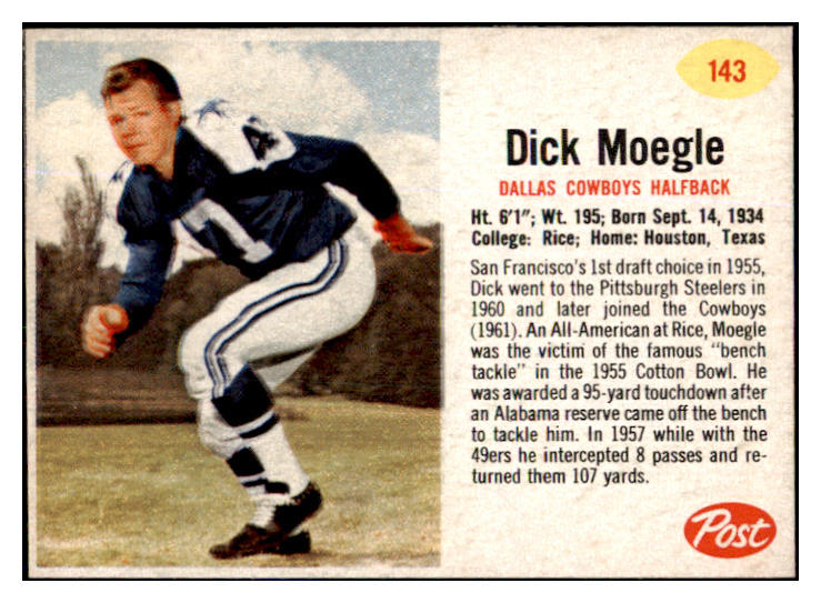 1962 Post Football #143 Dick Moegle Cowboys NR-MT 436444