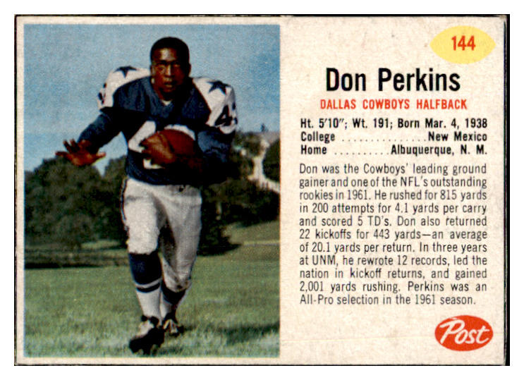 1962 Post Football #144 Don Perkins Cowboys EX-MT 457934