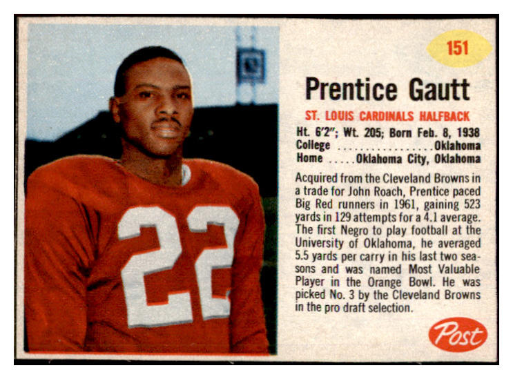 1962 Post Football #151 Prentice Gautt Cardinals EX 529423