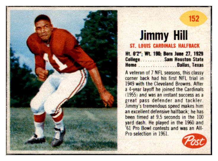 1962 Post Football #152 Jimmy Hill Cardinals NR-MT 457937