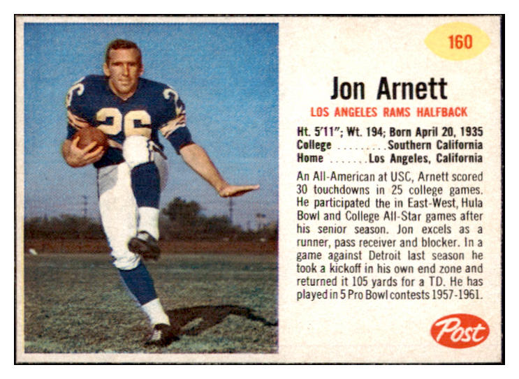 1962 Post Football #160 Jon Arnett Rams EX-MT 529429