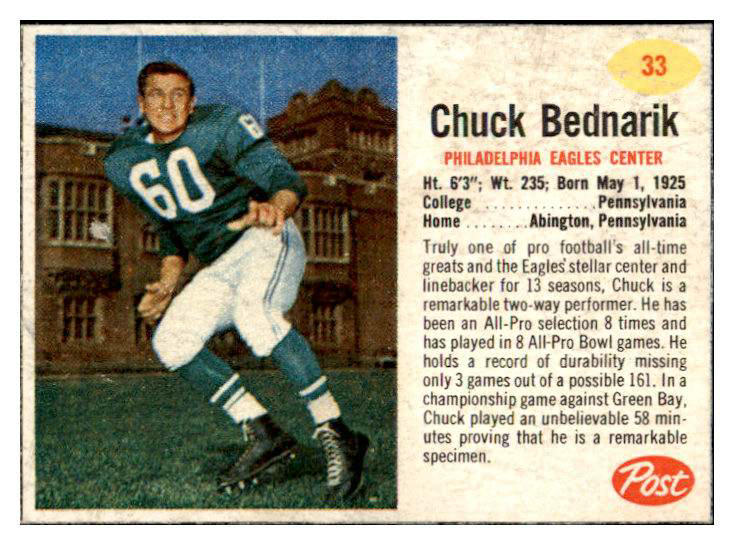 1962 Post Football #033 Chuck Bednarik Eagles NR-MT 415457