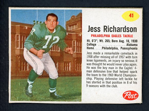 1962 Post Football #041 Jess Richardson Eagles NR-MT 415523