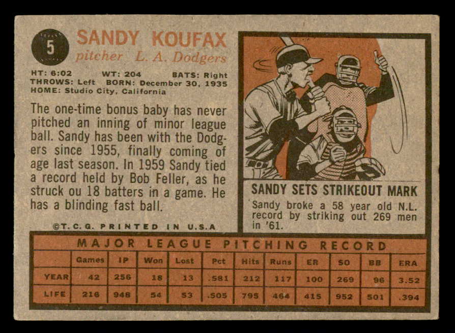 1962 Topps Baseball #005 Sandy Koufax Dodgers EX+/EX-MT 540468