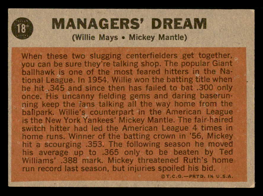1962 Topps Baseball #018 Mickey Mantle Willie Mays EX 541741