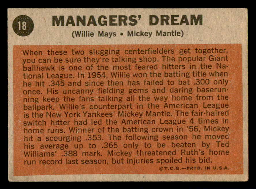 1962 Topps Baseball #018 Mickey Mantle Willie Mays VG-EX 540540