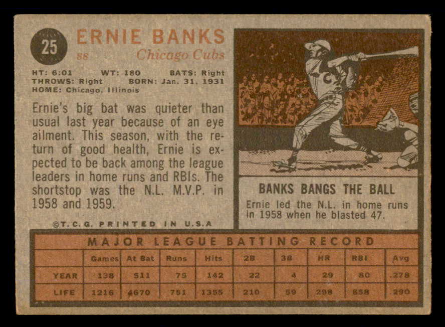 1962 Topps Baseball #025 Ernie Banks Cubs EX 540489
