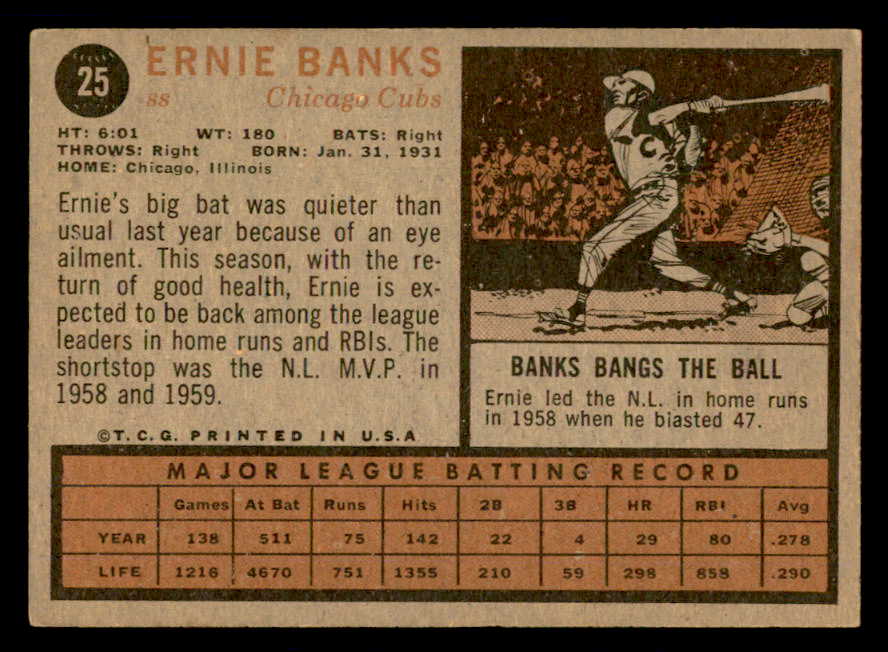 1962 Topps Baseball #025 Ernie Banks Cubs EX 540490