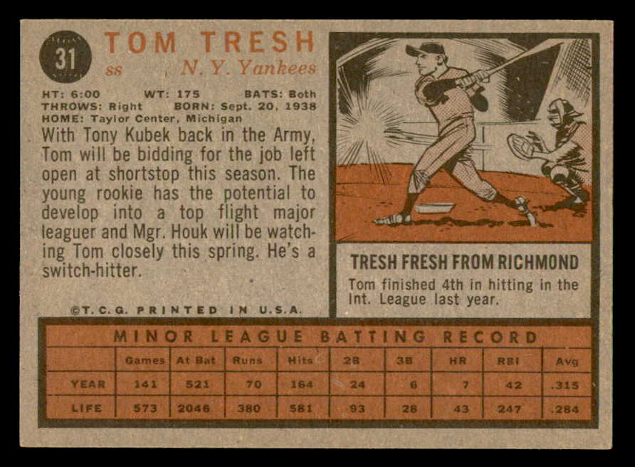 1962 Topps Baseball #031 Tom Tresh Yankees EX-MT/NR-MT 540458