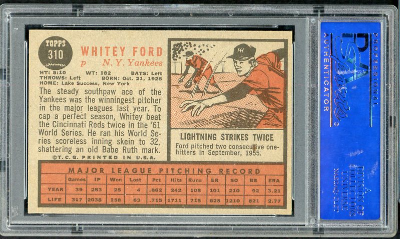 1962 Topps Baseball #310 Whitey Ford Yankees PSA 7 NM 538132