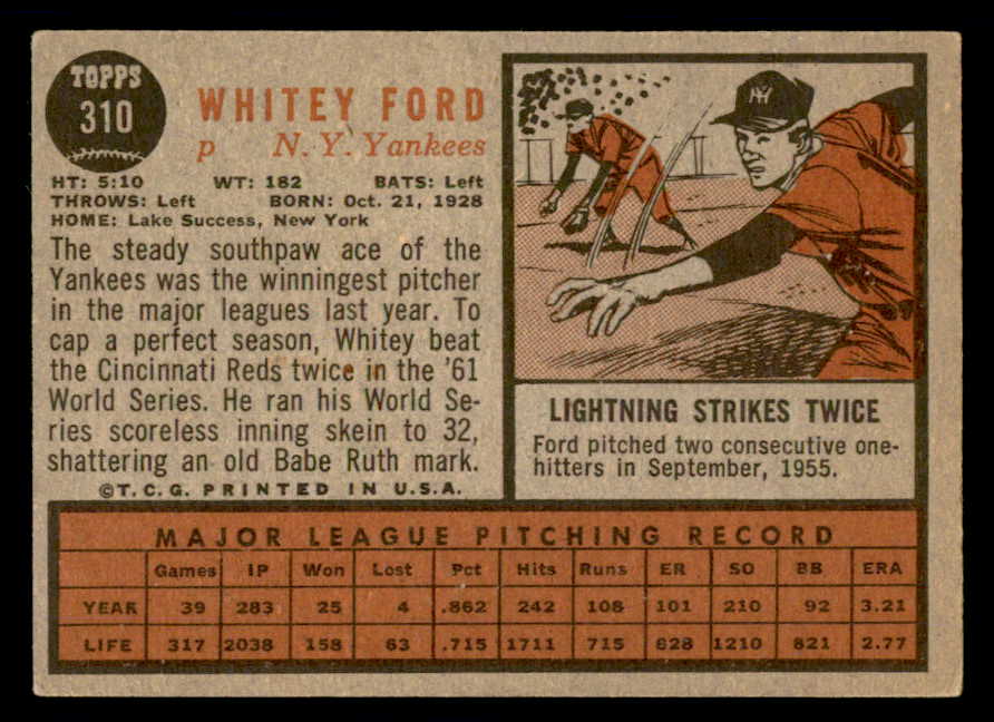 1962 Topps Baseball #310 Whitey Ford Yankees VG-EX 540475