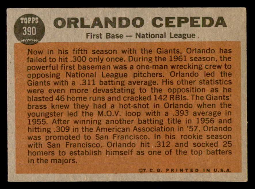 1962 Topps Baseball #390 Orlando Cepeda A.S. Giants EX-MT 540460