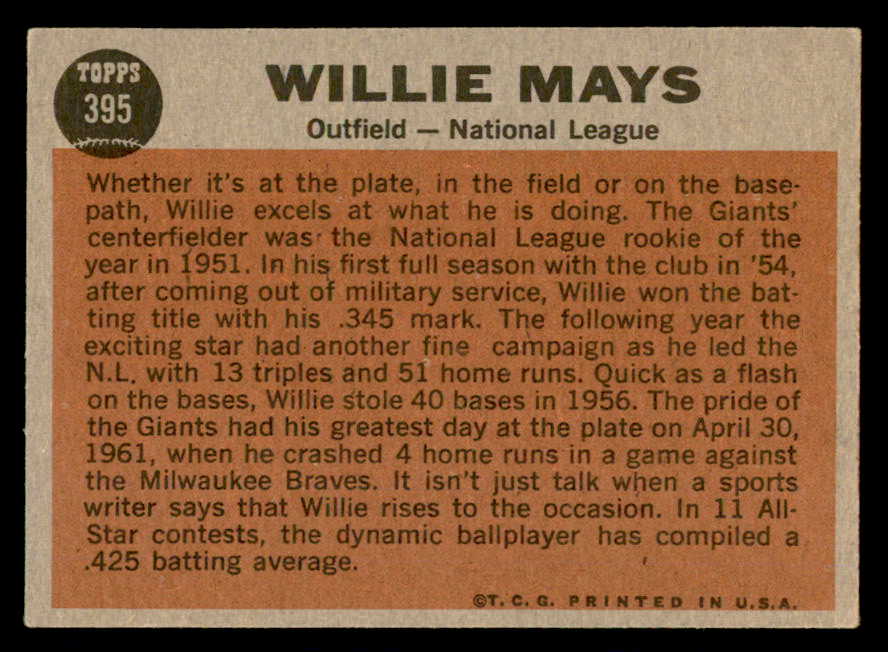1962 Topps Baseball #395 Willie Mays A.S. Giants EX 540545