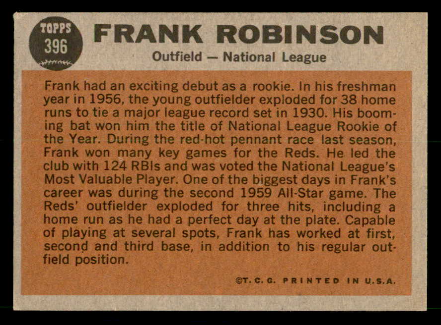 1962 Topps Baseball #396 Frank Robinson A.S. Reds EX-MT 539632