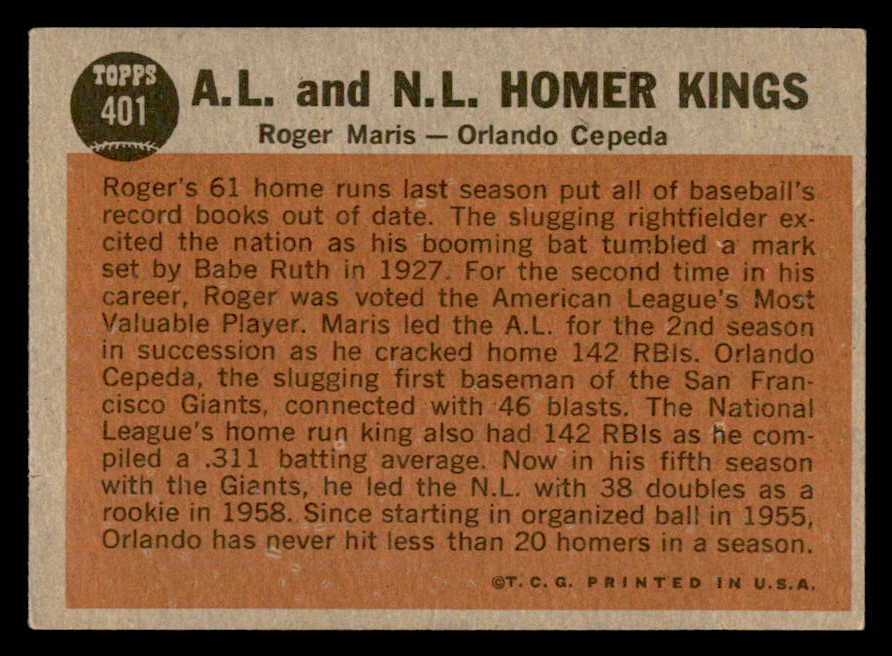 1962 Topps Baseball #401 Roger Maris Orlando Cepeda EX+/EX-MT 540547