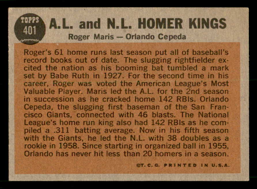1962 Topps Baseball #401 Roger Maris Orlando Cepeda EX-MT 539624