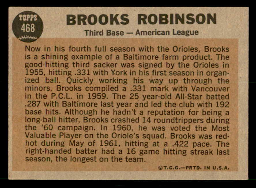 1962 Topps Baseball #468 Brooks Robinson A.S. Orioles EX-MT 539628