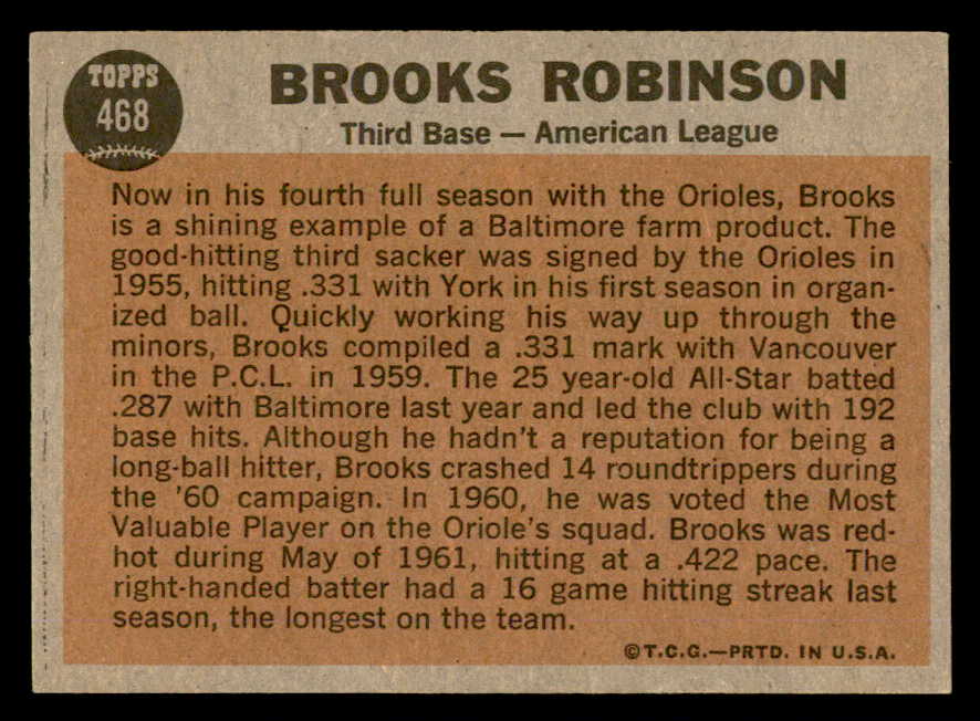 1962 Topps Baseball #468 Brooks Robinson A.S. Orioles VG-EX 540526