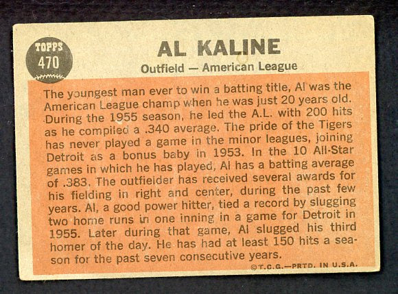 1962 Topps Baseball #470 Al Kaline A.S. Tigers VG-EX 540466