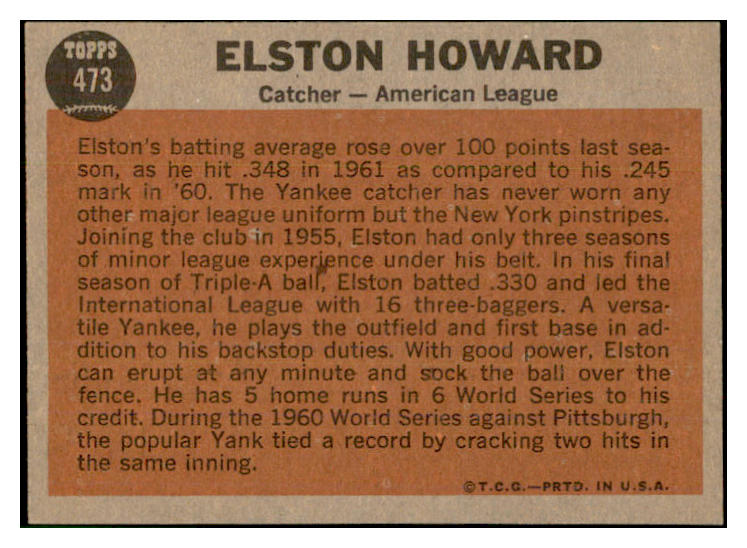 1962 Topps Baseball #473 Elston Howard A.S. Yankees NR-MT 533826
