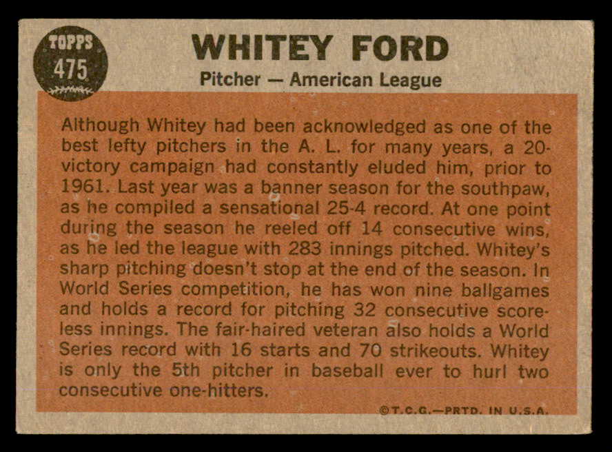 1962 Topps Baseball #475 Whitey Ford A.S. Yankees VG-EX 540448