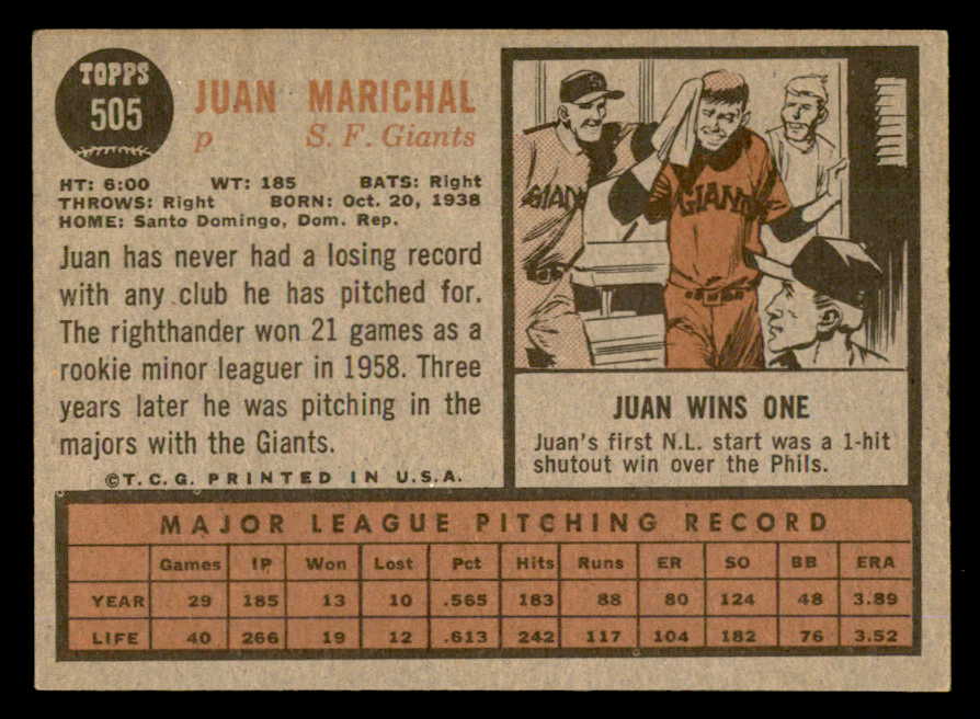 1962 Topps Baseball #505 Juan Marichal Giants EX 540531