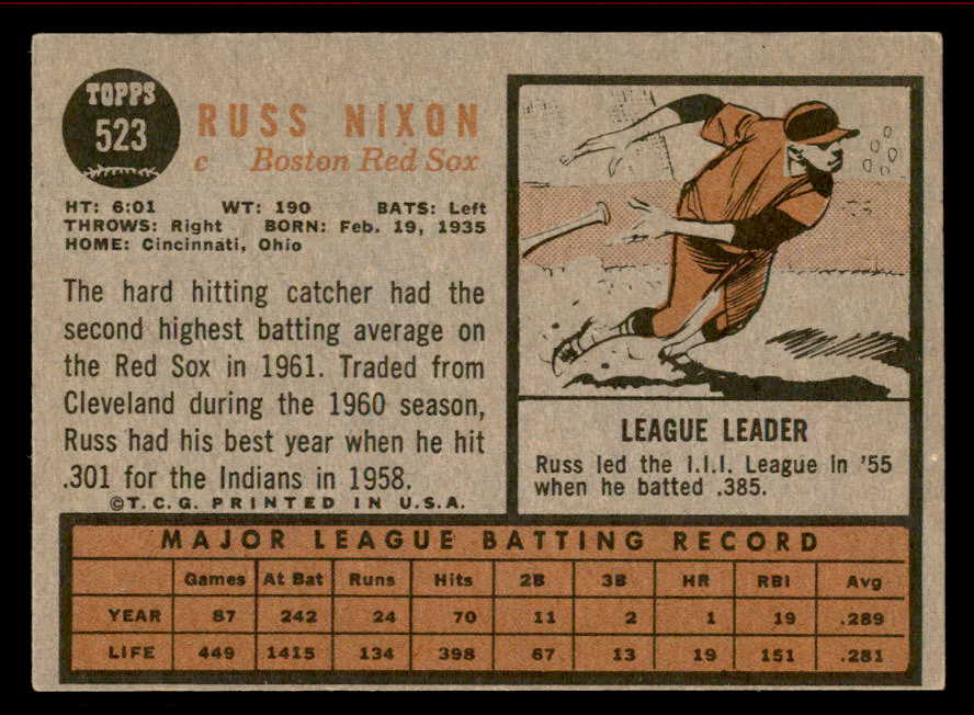 1962 Topps Baseball #523 Russ Nixon Red Sox VG-EX 542844