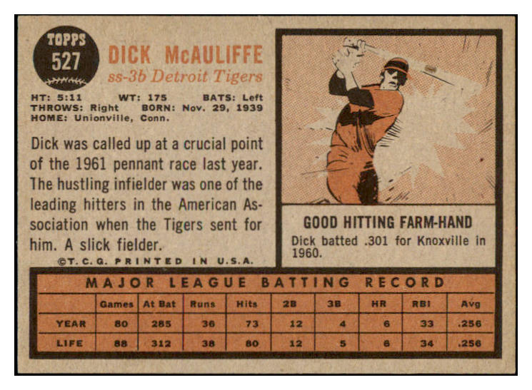 1962 Topps Baseball #527 Dick McAuliffe Tigers NR-MT 531070
